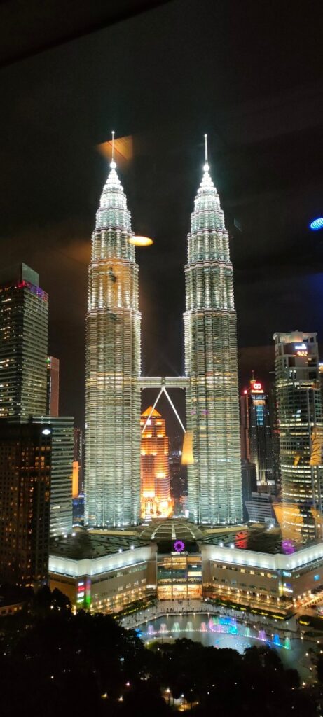 夜になると、窓からライトアップされたツインタワーを眺めることができ、その絶景は何度見ても飽きることがありませんでした。